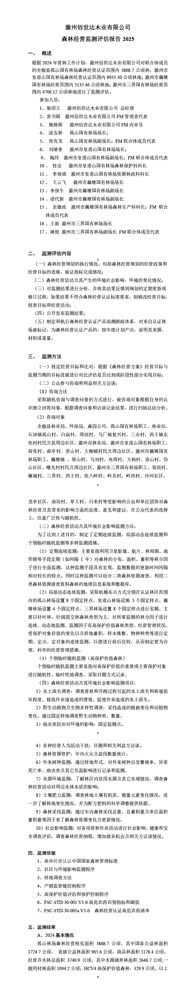 滁州佰世达木业有限公司森林经营监测评估报告